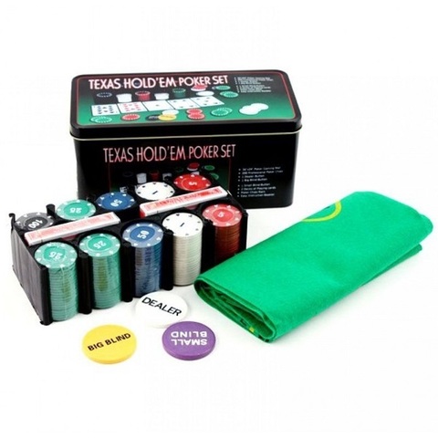Набор для игры в покер (200 фишек, 2 колоды, фишки диллера), метал. уп., ИН-0145