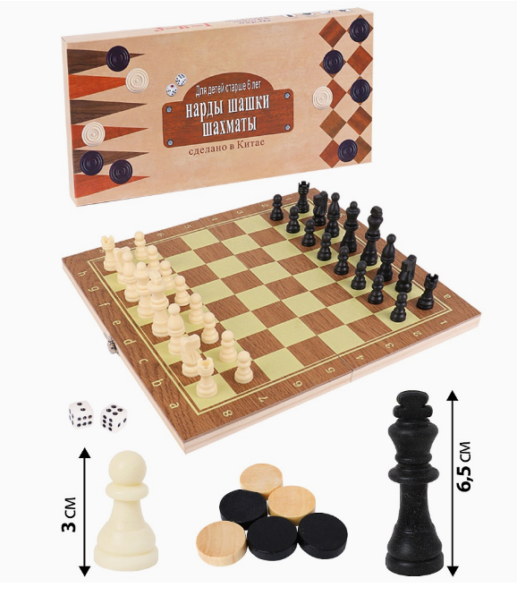 —Шахматы, нарды, шашки деревянные 3 в 1 (поле 34 см) фигуры из пластика P00030 М