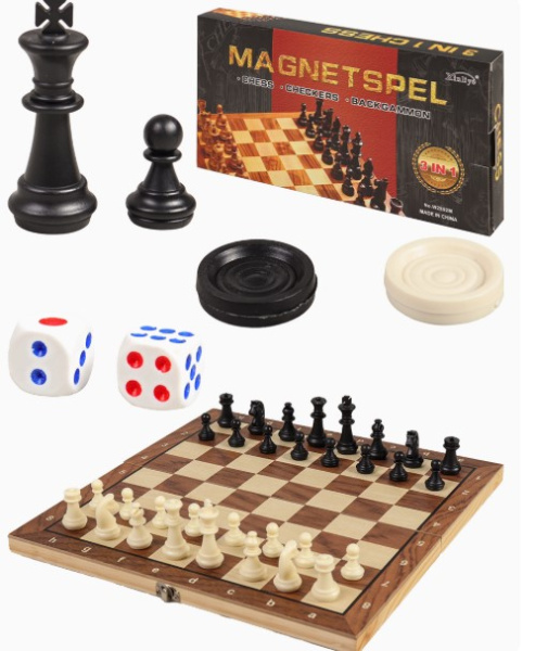 —Игра 3 в 1. Шахматы, шашки, нарды пластиковые на магните 24х12см.И-0140