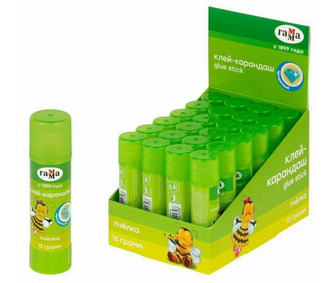 —Клей карандаш, 'Гамма', Пчелка, 15 г, прозрачный, 1392022.15