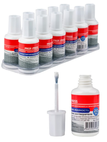 Корректирующая жидкость, 20 мл, с кисточкой на спиртовой основе, КЖ-3815