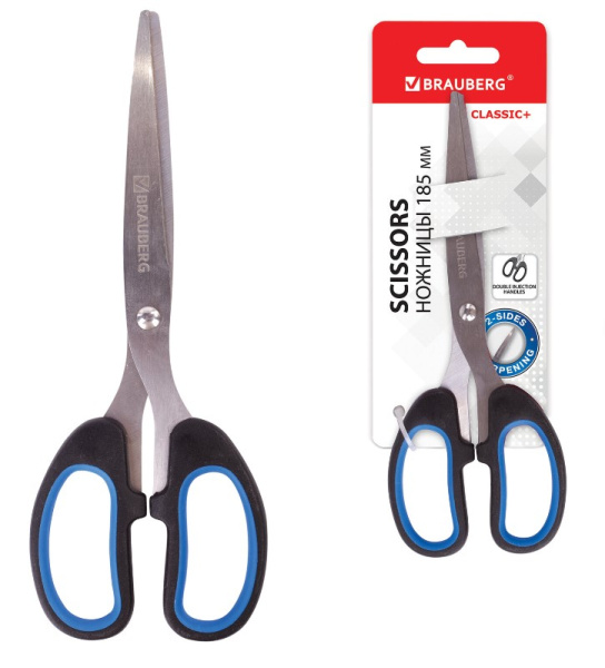 Ножницы Brauberg 'Classic+' 185 мм., черно-синие, резин. вставки, 236448