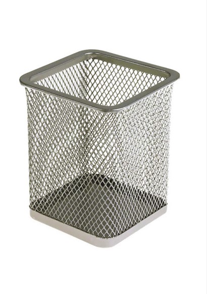Стакан-подставка для ручек металл. квадрат, серебро цвет, AR-804;СЕРЕБРО