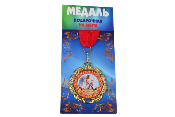 —Медаль подарочная на ленте металлическая Крестная D=6,5 см.
