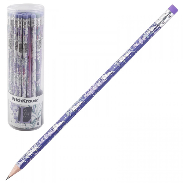Карандаш ч;гр Erich Krause Lavender HB с ластиком, трехгранный, деревянный,корпус - ассорт, 56956