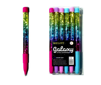 Ручка шариковая GALAXY градиент с блёстками, синяя, 0.7 мм. арт. MY1001 (12;144;864 шт.)