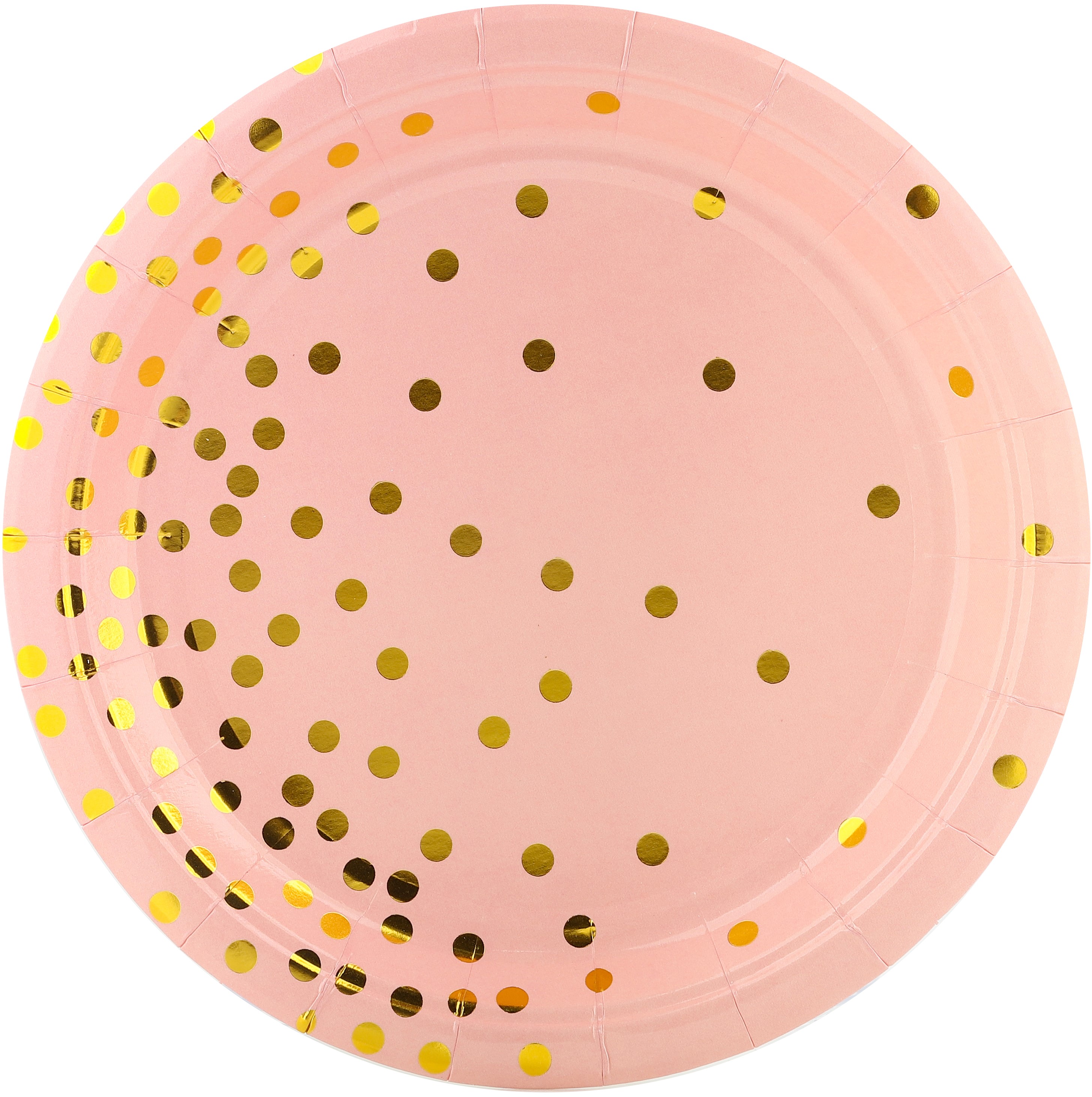 —Тарелки (9'';23 см), Золотое конфетти, Розовый;Золото, Металлик, (6 шт;уп), 6231898