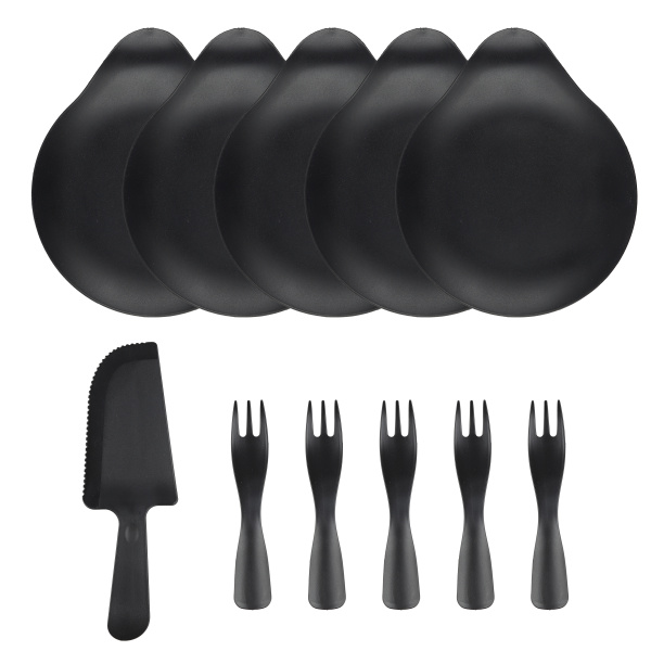 Десертный набор'Где тортик.', тарелки, вилки, нож, черный, (11 шт;уп), 6232453