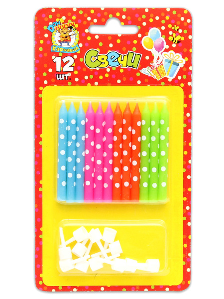 Свечи для торта с подставками 'Классические', 24 шт, 6 см, ассорти, картон. уп, 620003