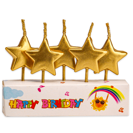 Свечи для торта Миленд на пиках Золотые звездочки, 5 шт, пластик уп., С-2542