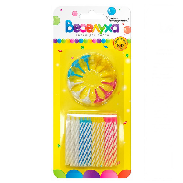 Свечи для торта с подставками 'Классические', 24 шт, 6 см, ассорти, картон. уп, 620003