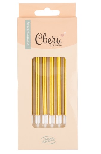 Свечи Люкс, Золото, Металлик, 0,5х10,5 + 3 см, 6 шт. с держателем, 802933