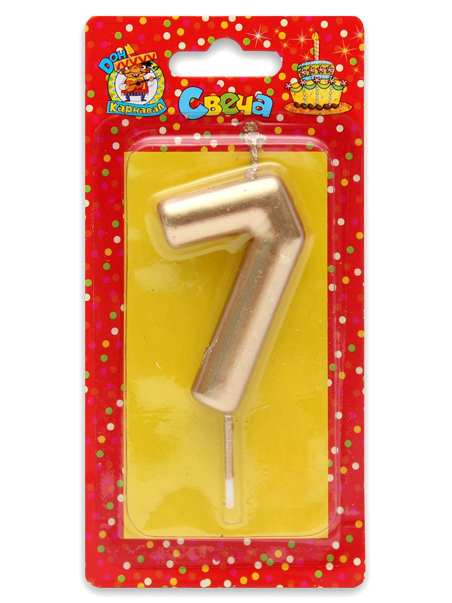 Свеча для торта 'Цифра 7. Золотая' Миленд, картон. уп., европодвес, С-1805