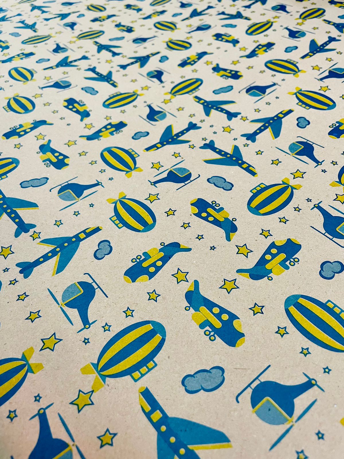 Бумага крафт 100 х70 см , 'Самолеты и вертолеты' , (1 лист) , 5075