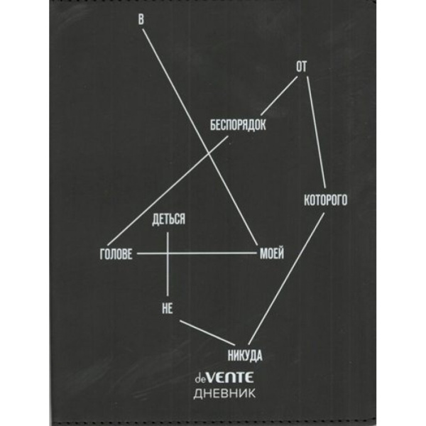 Дневник 'deVENTE. В моей голове беспорядок' универсальный блок, 48 листов, белая бумага 80 г;м², печать в 1 краску, гибкая обложка из искусственной кожи, шелкография, отстрочка, 1 ляссе