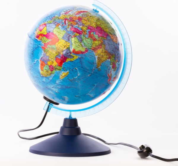 —Глобус Земли Политический Рельефный (250 мм с подсветкой), классик евро,Ве022500259