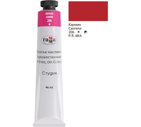 —Краска масляная художественная Гамма 'Студия' , 46 мл ,туба , кармин, 0.00.А46.206