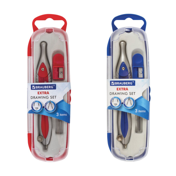 —Готовальня BRAUBERG 'Extra', 3 предмета (циркуль120 мм, точилка, грифель), 210685
