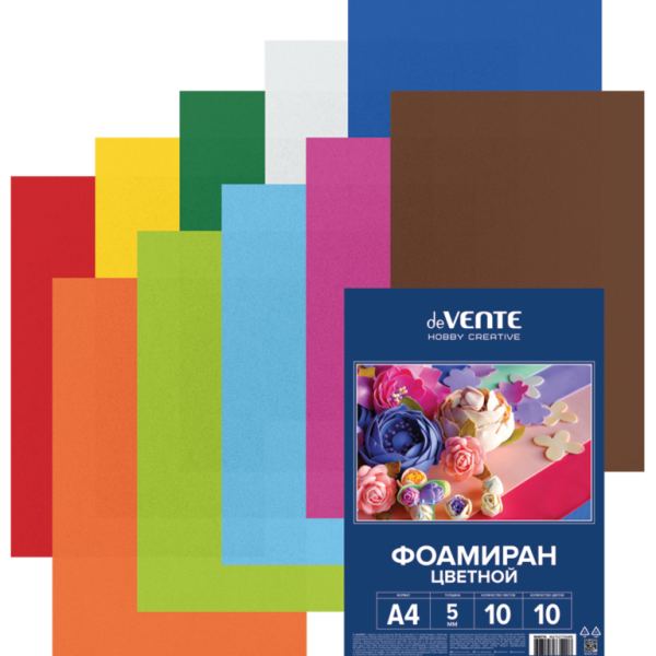 Фоамиран цветной 'deVENTE', А4 , 5 мм , 10 листов , 10 цветов, 8112302