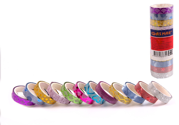 Скотч декоративный 12 мм х 3 м ,150 mic , с рисунком , (8 шт/уп), AR-4411