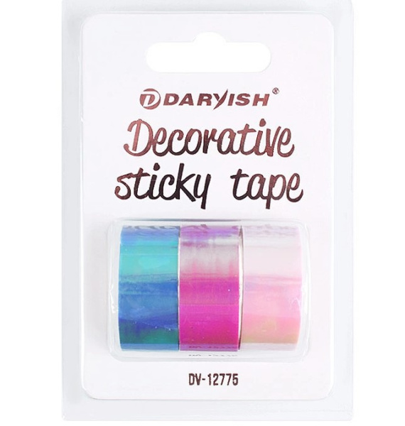 Лента декоративная липкая 'Darvish', 15 мм х 3 м, (3 шт;уп), голография, DV-12775