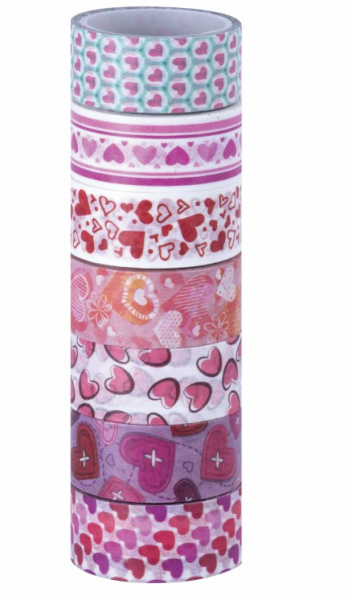 —Клейкие WASHI-ленты для декора с фольгой Сердца, 15 мм х 3 м, 7 шт, ОСТРОВ СОКРОВИЩ, 661708