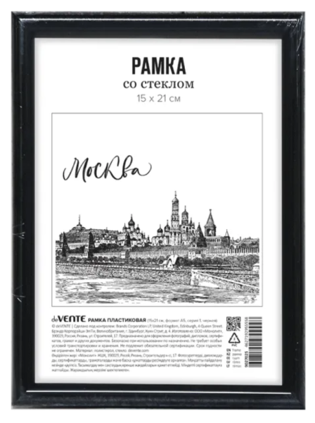 —Рамка пластиковая 'deVENTE', 15х21 см , А5 , стекло , цвет черный, 9027025