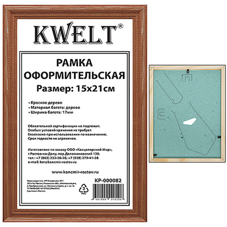 —Фоторамка 'KWELT' деревянная 15х21 см, красное дерево, стекло, сосновый багет, КР-000082;СТЕКЛО
