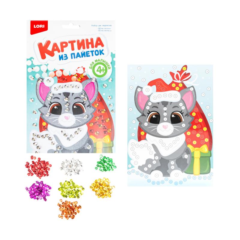 Картина из пайеток LORI 'Солнечный котик' картон. уп., Мкс-003
