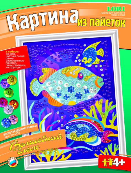—Картина из пайеток LORI 'Экзотические рыбки' картон. уп., Ап-002