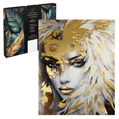 —Картина по номерам с поталью на деревянном подрамнике, Девушка в перьях, 40х50 см, 67980