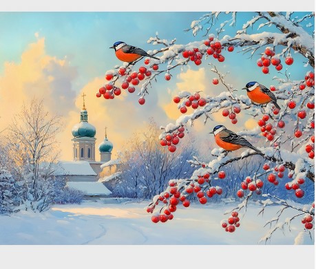 —Холст с красками 22х30 см по номерам в коробке (16 цв.) Деревенский пейзаж, ХК-0505