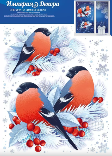 —Оформительские наклейки 'Снегири на ветках', (1 шт;уп), 77.032.00