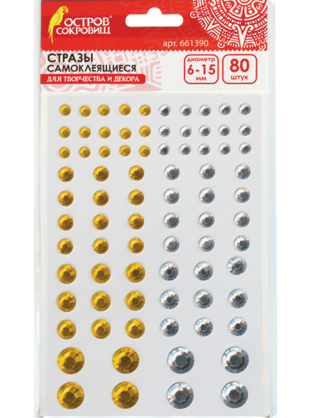 —Стразы самоклеящиеся 'Круглые', 6-15 мм , 80 шт , ассорти, 661390