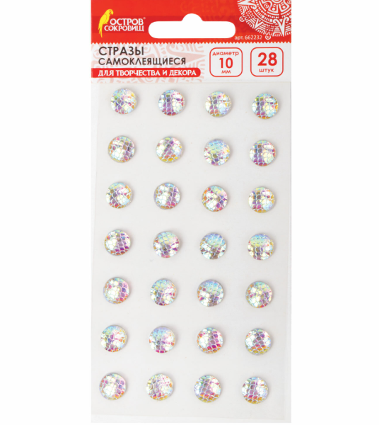 —Стразы самоклеящиеся 'Круглые', 10 мм , 28 шт , ассорти, 662232