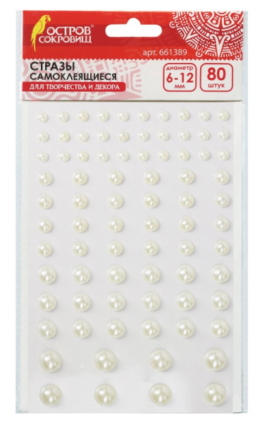 —Стразы самоклеящиеся 'Жемчуг', 6-12 мм, 80 шт, на подложке, ОСТРОВ СОКРОВИЩ, 661389
