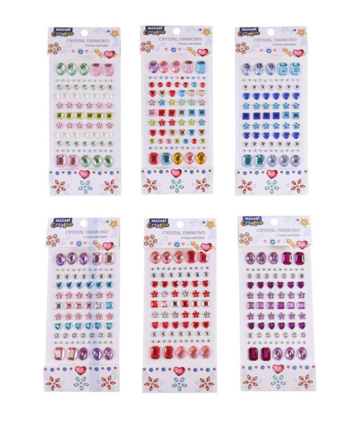 Стразы-наклейки акриловые АССОРТИ, 8х19 см, 6 дизайнов, ОПП-упаковка с европодвесом, M-8649